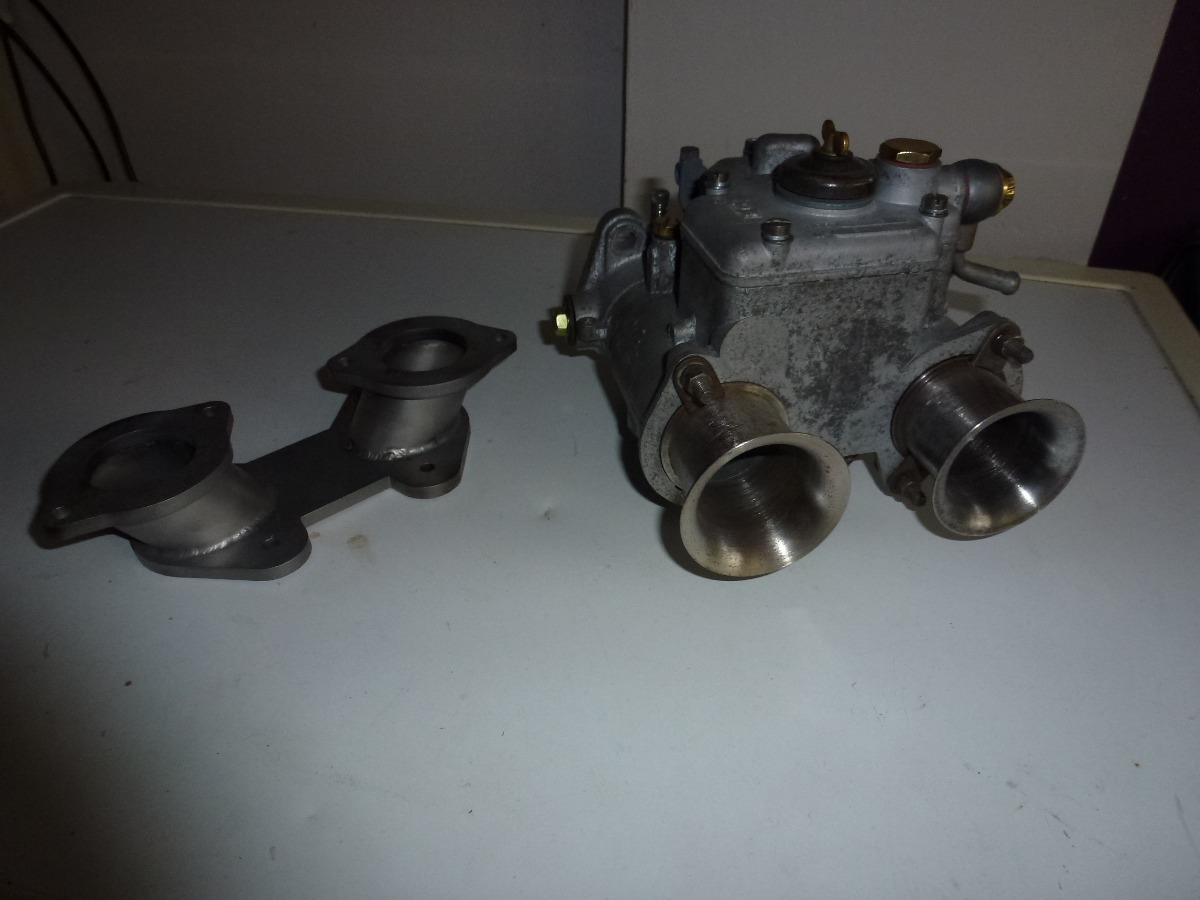 Here's the Weber conversion I designed. I had the two different length manifolds made so that I could play with different airflows. I'm probably going with the shortie version. One will end up as a spare or get sold.