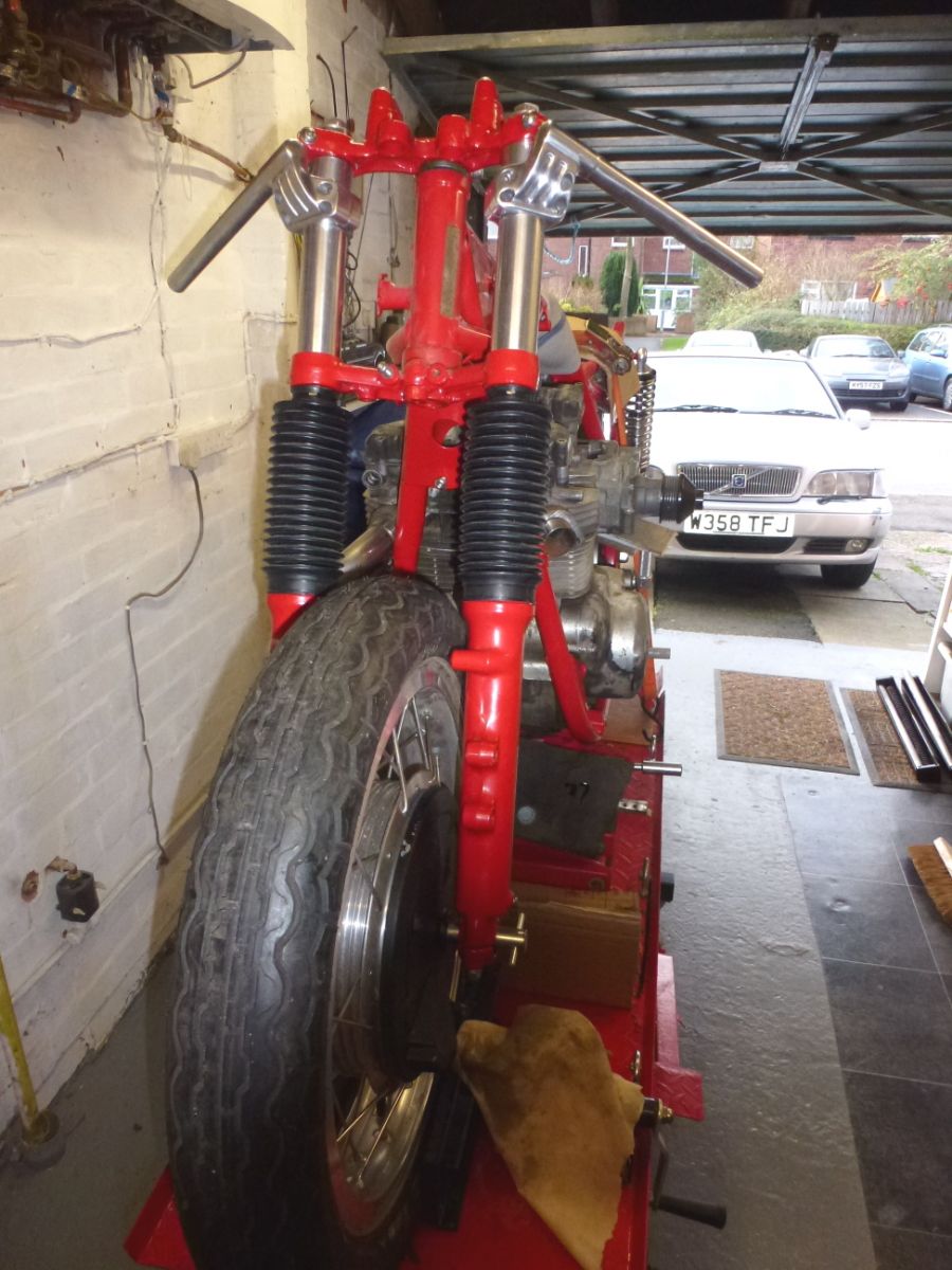 The forks have now been assembled with the new springs - actually managed to get the fork caps on without cross threading them ! That means we can now finalise the front and rear wheel spindles and once they're made - the chassis is truly "rolling "