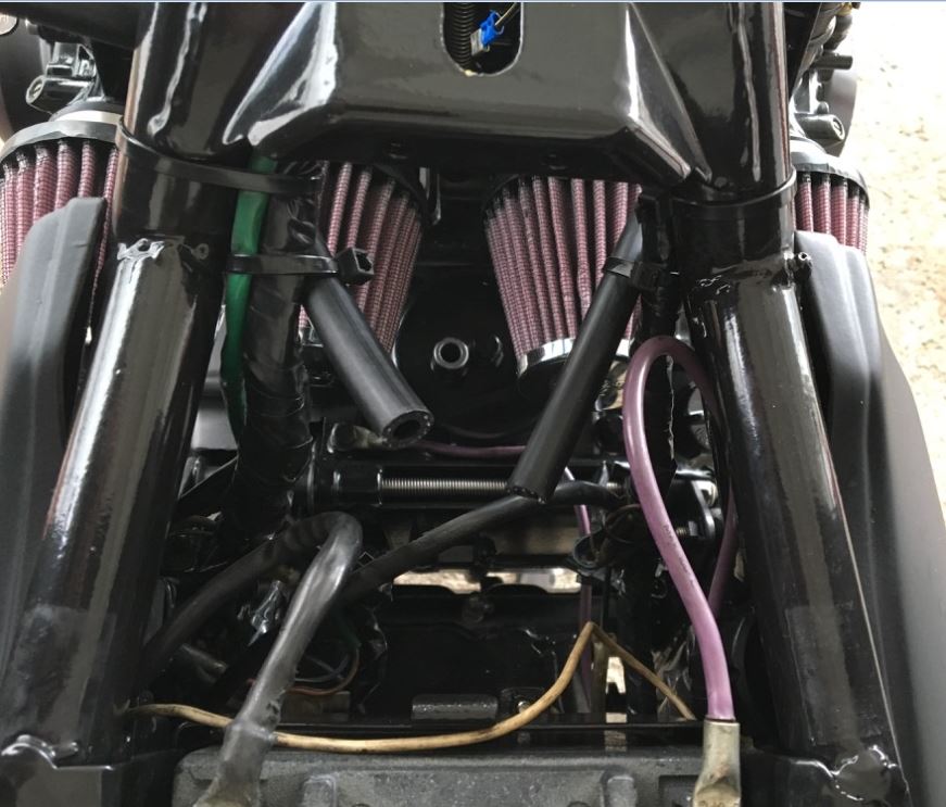 I just have let the end of the hoses end up in front of the battery under the gas tank, I think that should be fine?
