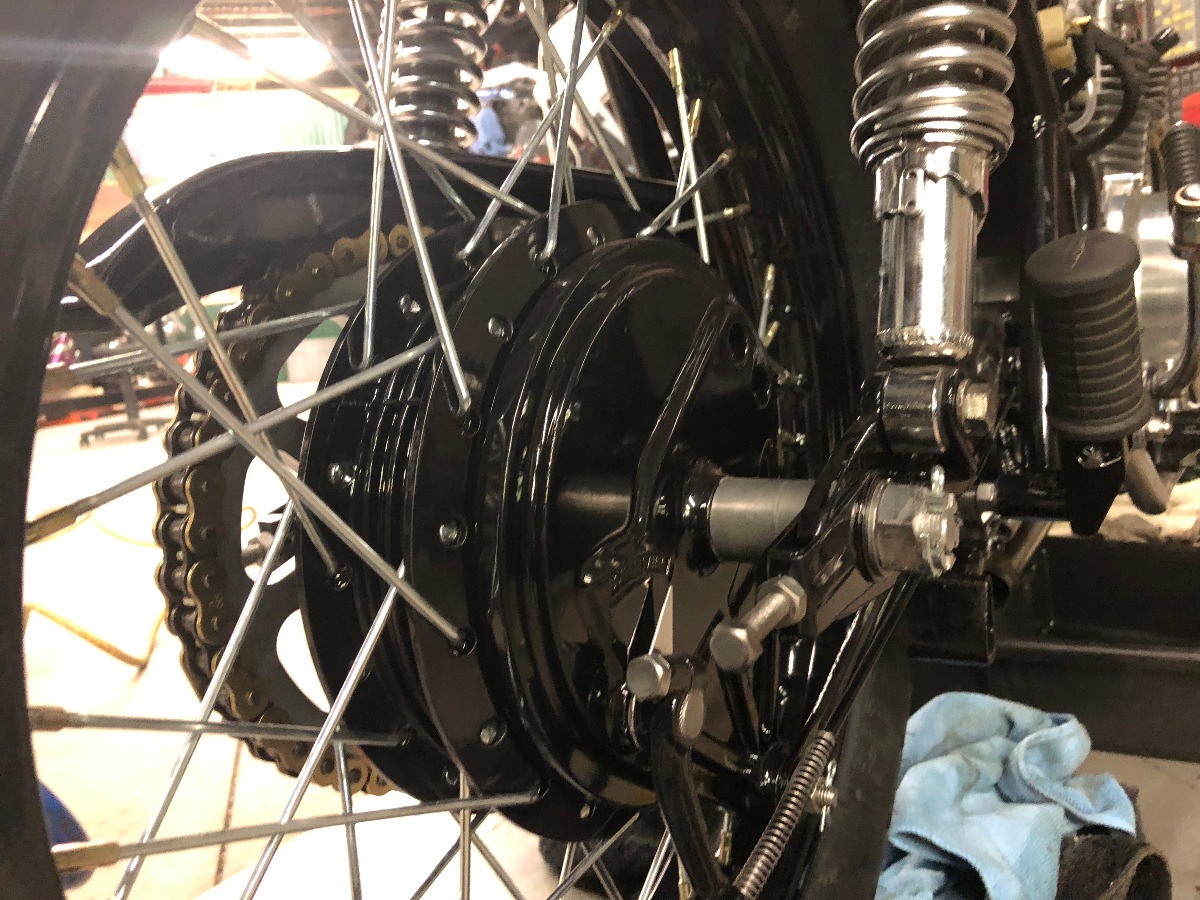 Today was a great day working on the 75. Got the carbs remounted, and the drain hoses ran. Got the chain cut down, installed and the rear hub all finished. Got the left footpeg and kickstand back on secure. Tim and I tackled the front brakes and master cylinder. 10x1.25 is the size going into the caliper, parts guy at the store said most auto places dont carry that one, so I had to clean up one from the cadaver. Blake helped me bleed the line, but since it was all dry, we got it feeling decent, but we will run the air bleed machine on it again tomorrow or Friday. No leaks!