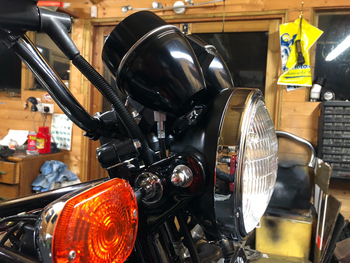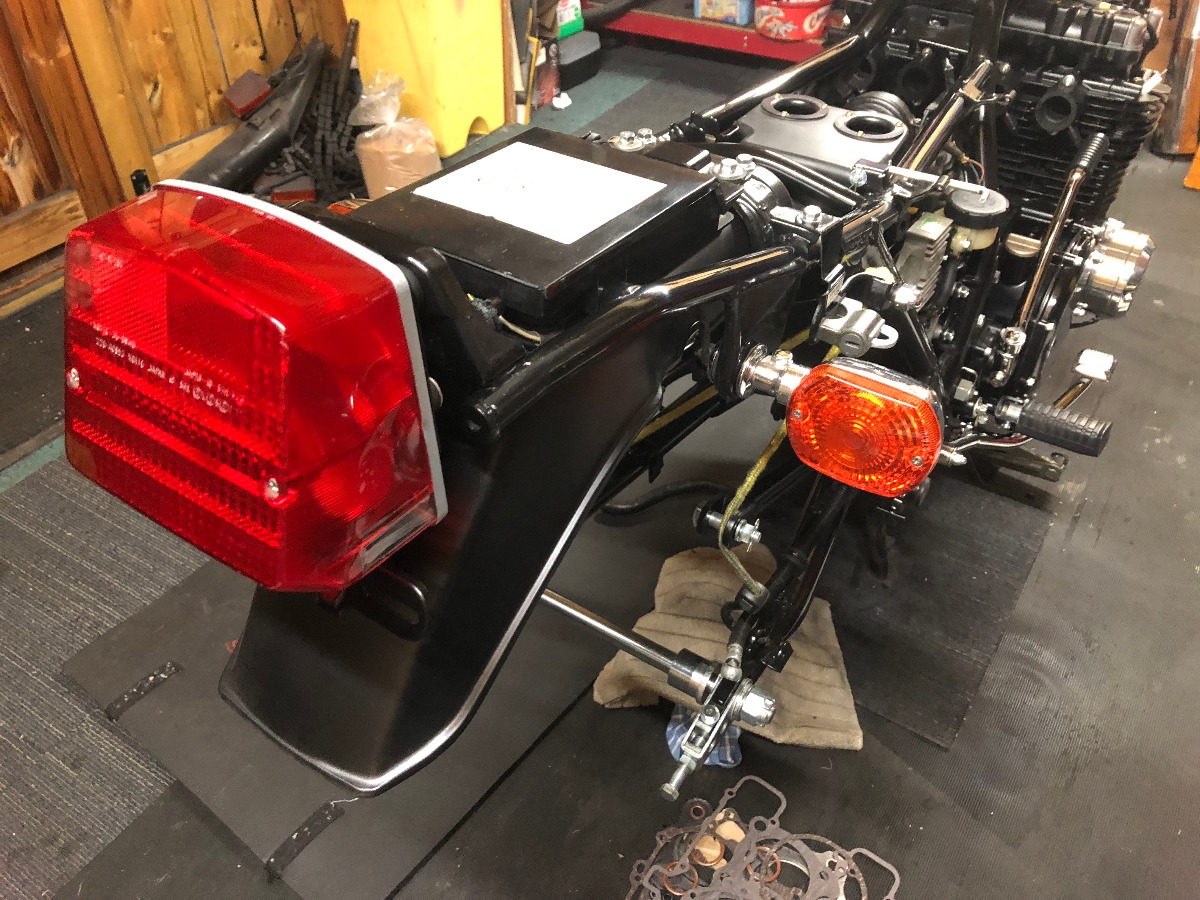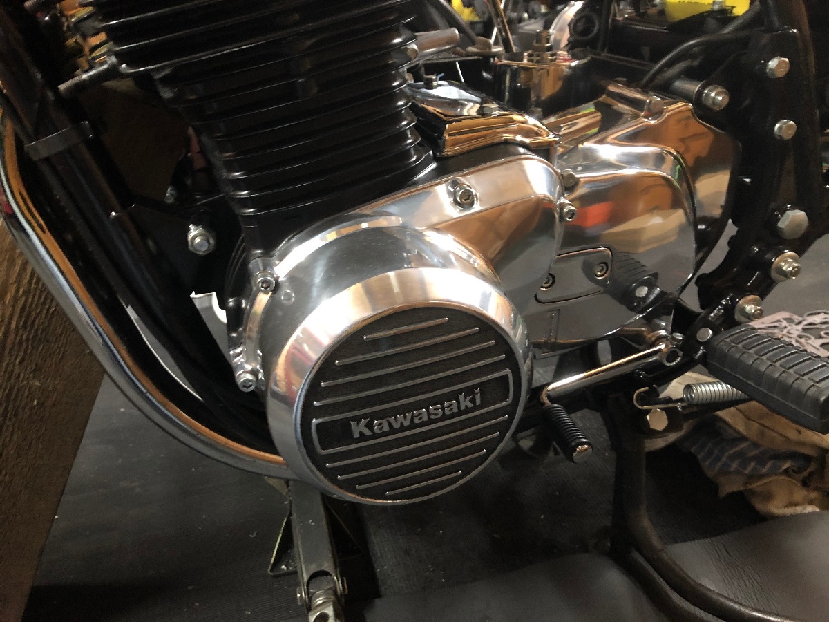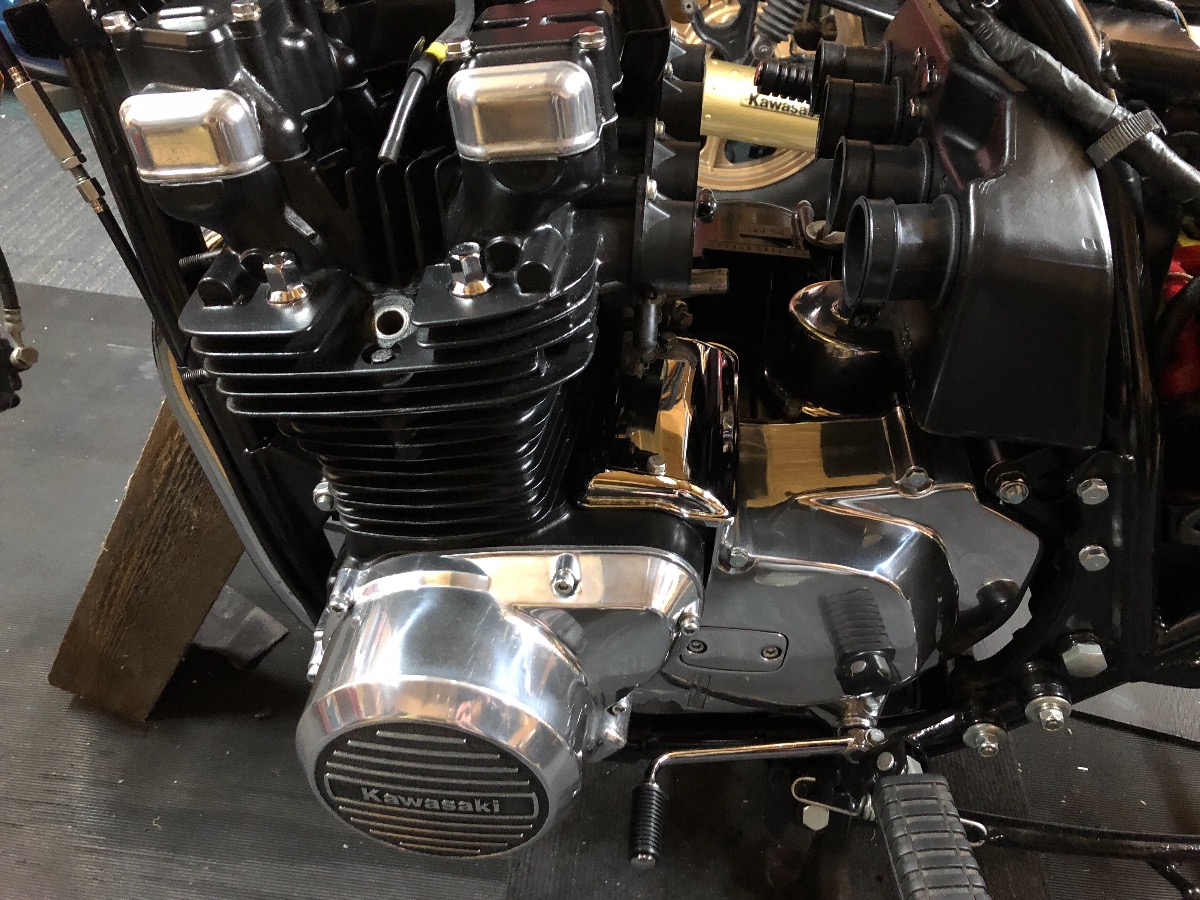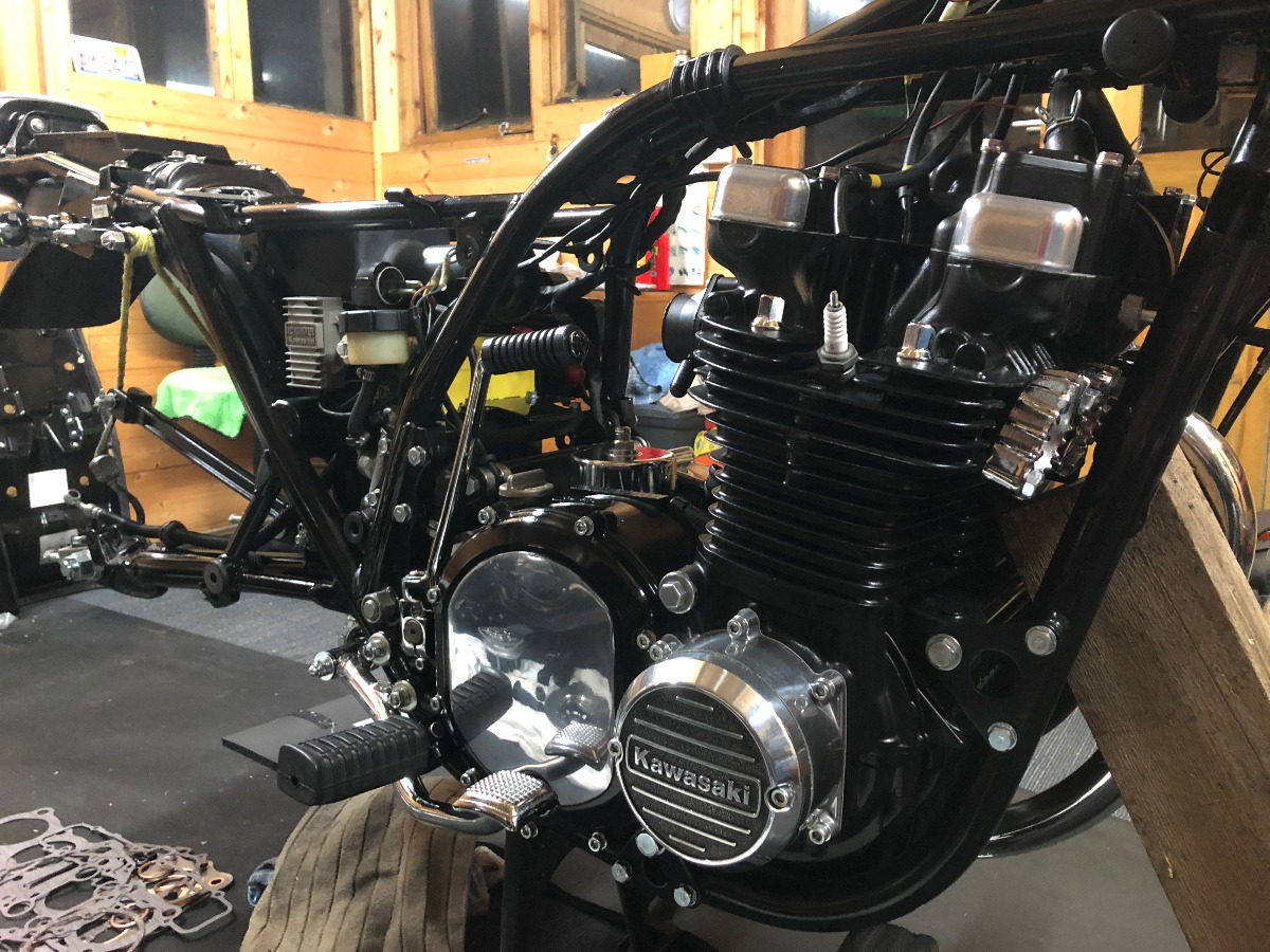 Engine & frame repainted, lots of chrome replating, wheels off to be refurbished, carbs being stripped/rebuilt.
