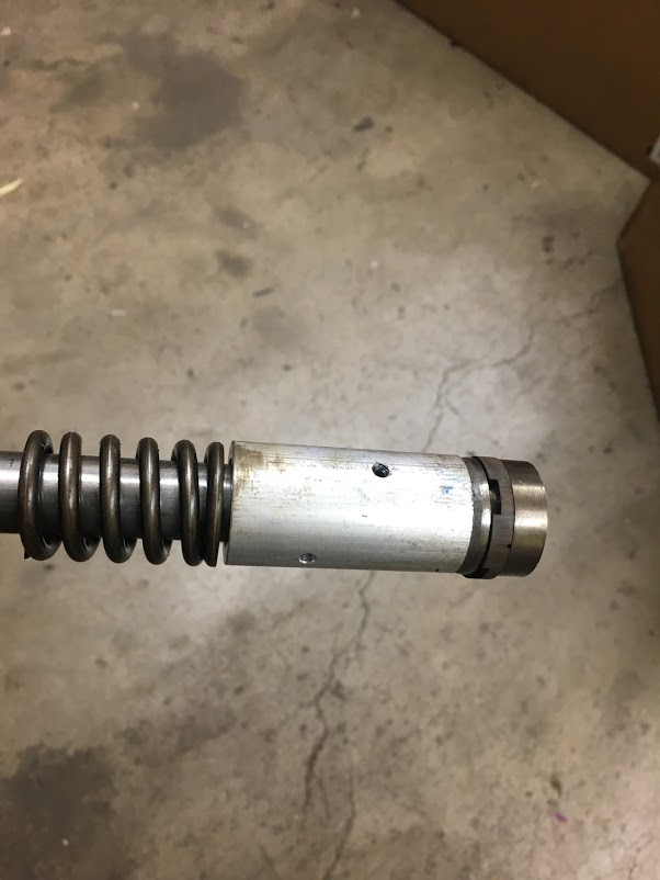 I think I put a small piece of soldering wire in that place, to prevent the spring from falling into the smaller diameter.