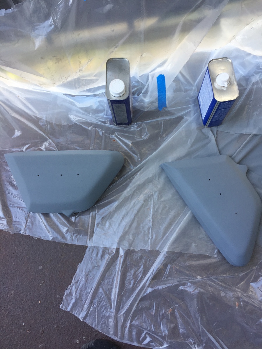 As far as your paint, I don't know what it is or how many coats were applied. Wet sanding with 800 or 1000 is often used. Automotive gray Scotchbrite is another way to flatten your existing paint. BUT...if you sand through the paint, you have to shoot the paint coat again, so it is a delicate operation. In an effort to save the factory paint on one of mine, I used 800 grit wet sanding on the tank, gray Scotchbrite on edges and crevices. It looks awful once you wet sand but the transformation is incredible. Spray the glamour coat and it pops. The second pic has been dry for an hour, so the gloss isn't because it is wet. You are correct, you do have to wait quite a while before you can wax or buff. I order paint product from 66 Auto Color, but any distributor can tell you the timing for full hard.