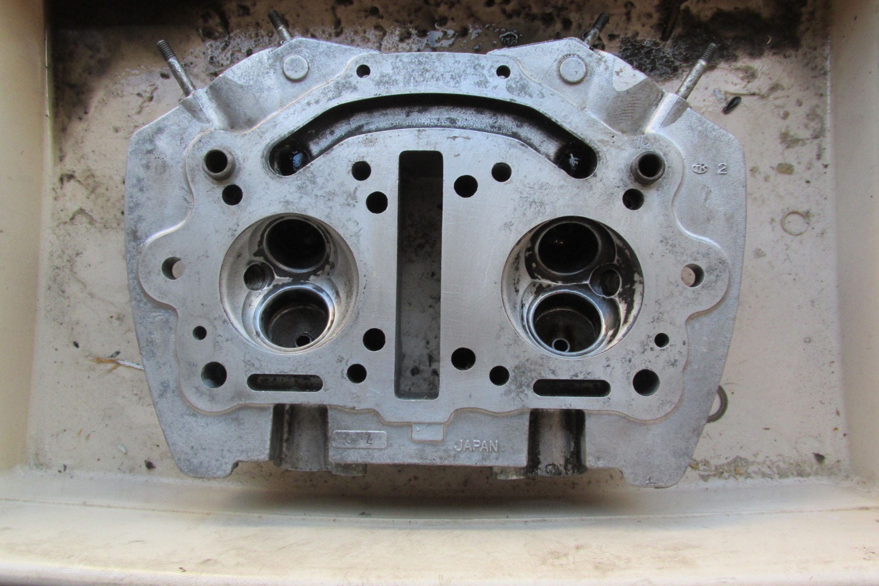 So, obviously, it's been a little while since I posted here. I dropped the bike off at a local shop that specializes in old Japanese bikes to fix the timing (since I was fed up with it). Got a call back that they had taken care of the timing, but upon trying to start the bike, one of the sparkplugs shot out. Obviously, the tap and thread insert did not hold. Which meant: time to replace the entire cylinder head.