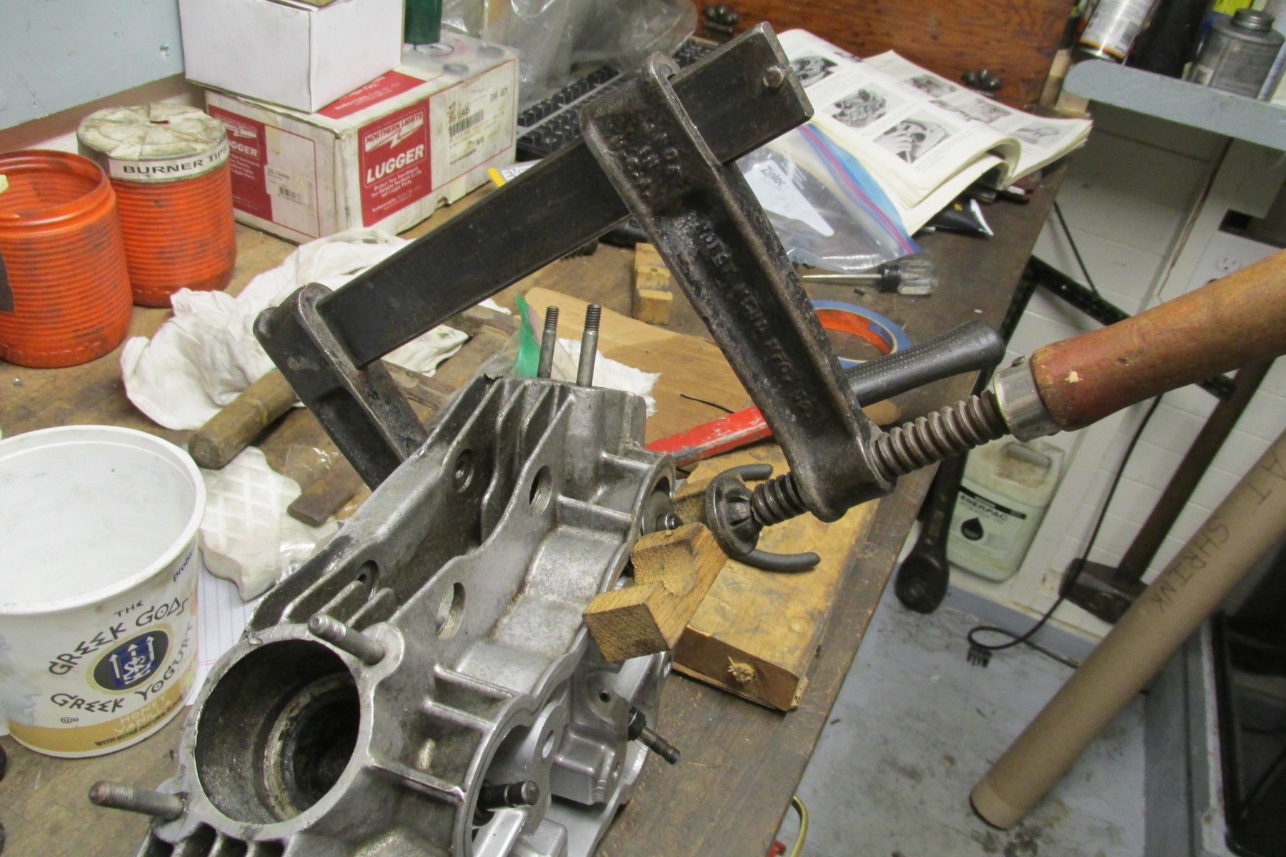 Behold my kludged valve-spring press. Well, it worked, at least. Today, I'm going to see if I can't get the engine back together.