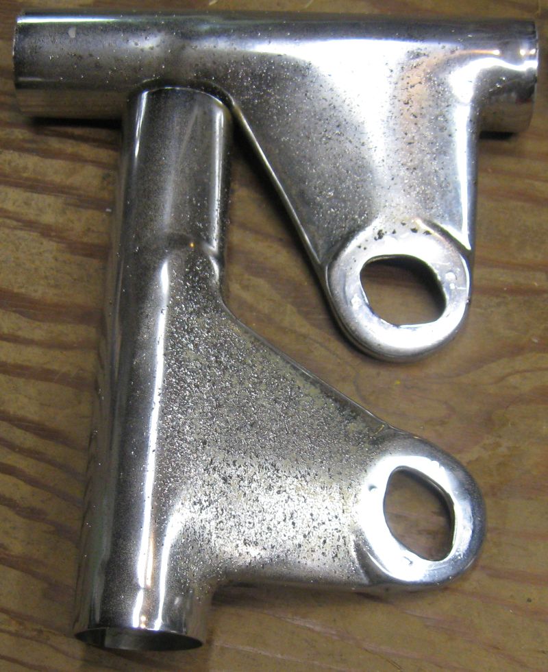 We needed to change the water in the vapor blaster anyway so, just out of curiosity, we decided to blast the very rusty chrome pieces to see how they'd clean up. We're going to have Space Coast Plating give an estimate on re-chroming, then weigh the cost of good used/new OEM and/or new repop parts.