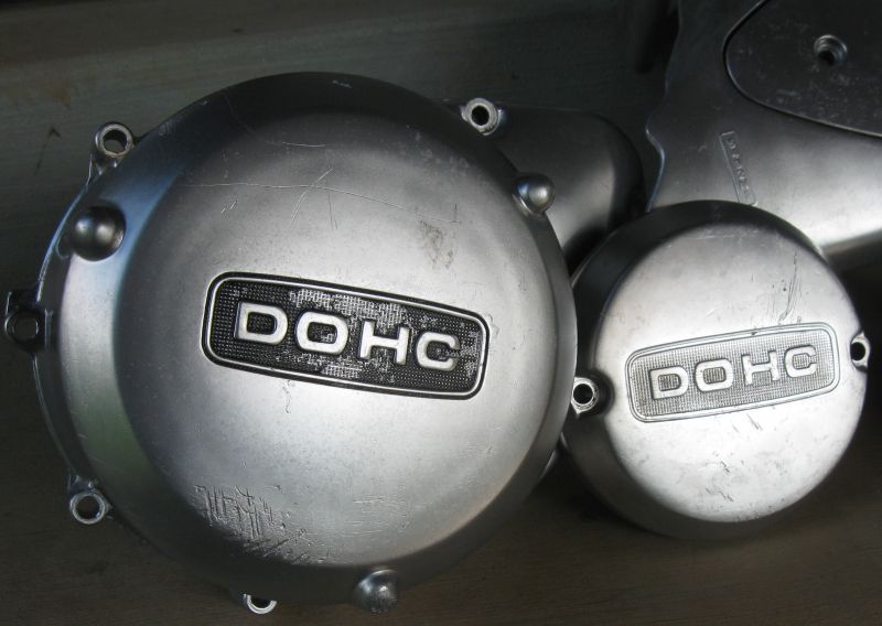 Local guy Steve Mikes, one of the "M's" from M&M Racing back in the day did the valve job & inserted the spark plug hole where the remains of a cross-threaded plug was broken off decades ago. The major internals, tranny, crank, cams (hollow!) etc. all came out of hibernation in very good shape and will be used as is. The deep layer of coal black gunk in the bottom of the pan required much um... "friendly persuasion" to remove. New case screws & bolts are on the motor bench waiting for motor reassembly to commence.