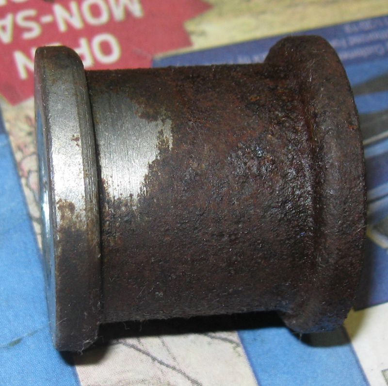 Rear axle spacer after a visit to the blast cabinet. The castle nut & adjuster bolts were in similar condition prior to blasting:
