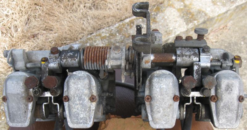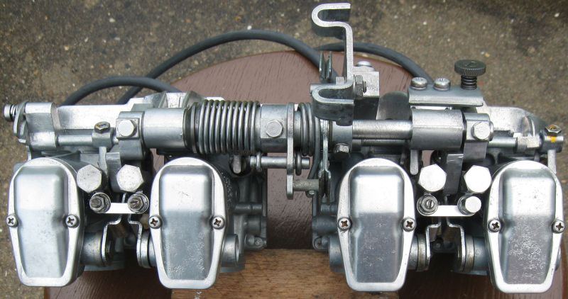 Internally the carbs were surprisingly clean, with only one pilot jet clogged. The whole rack had obviously never been molested, so the basics were still sound. Linkage parts were all reused after cleaning.