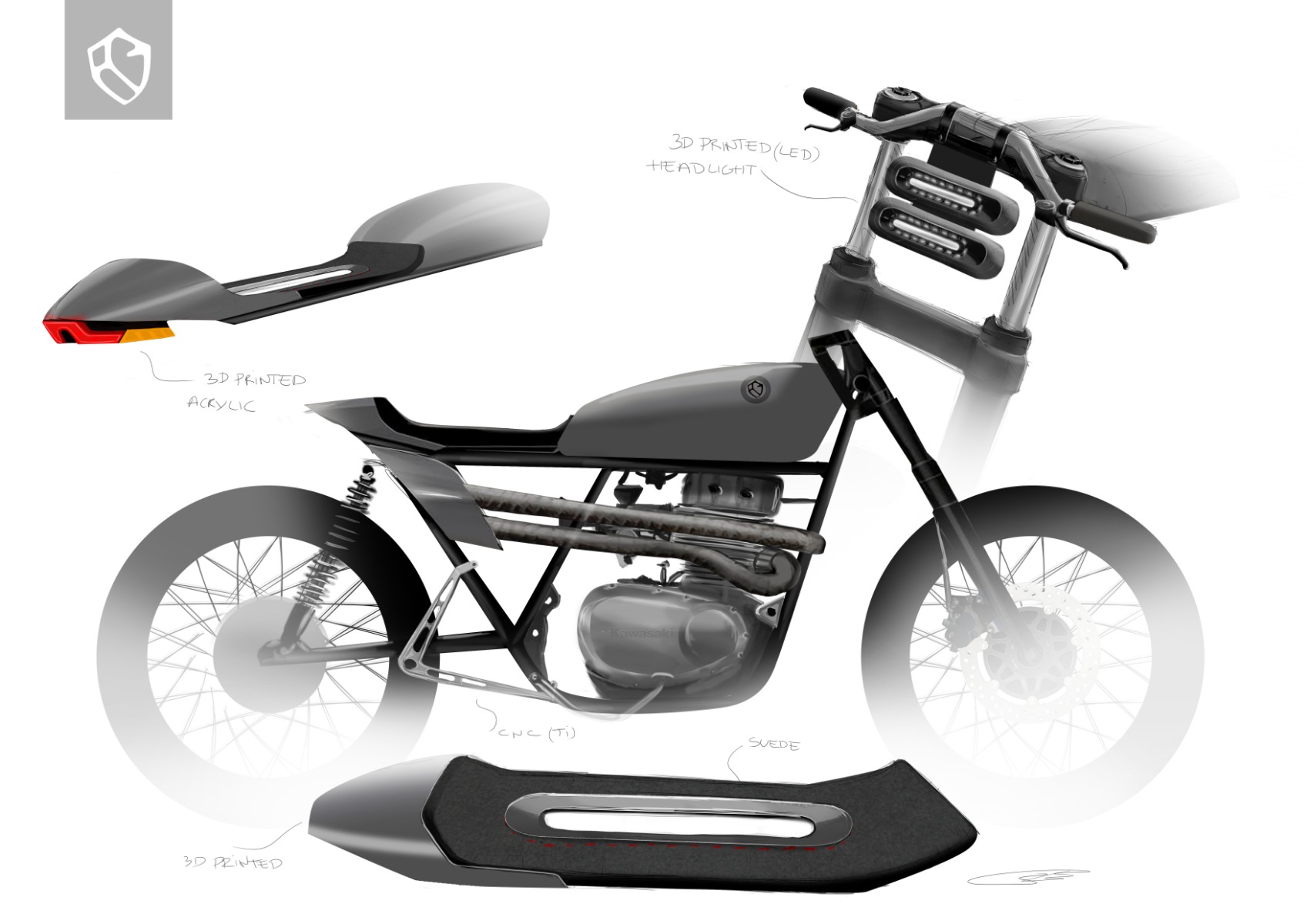 I have scanned the tank, which will allow me to make a template for the weldings and metal work as I have never done that before. The 2010 Kawasaki Ninja 250R was easily swap and makes a big difference.