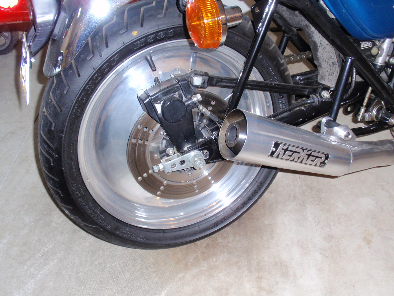 Thanks. I bought that Kerker brand new back in the late '90s. It was flat black from the factory. I shipped it to HPC and had it coated, inside and out. A nice alternative to chrome. And, yes, I did take off one of the front brake calipers and rotor for weight savings. I'm thinking that I'm going to go back to the dual disc front setup for the street.