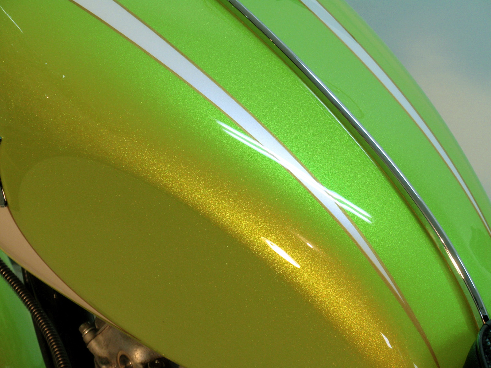 Thanks, old_kaw. Picking that lime green color took a while. But once I found it, I knew that was it! I wanted something that would stand out from the typical red factory colors which you typically see with the '68 - '70 Bonnies. The color is officially PPG Candy Key Lime from their Vibrance collection. Looks great in person as it is also a pearl and actually flips from a gold to pale blue as the light shifts. Tried to capture that effect in the one pic below.
