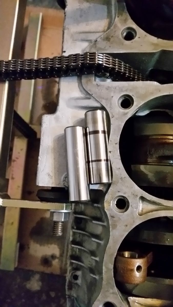 Next I put the pistons back on. The piston pins looked a bit worn so I ordered new ones.
