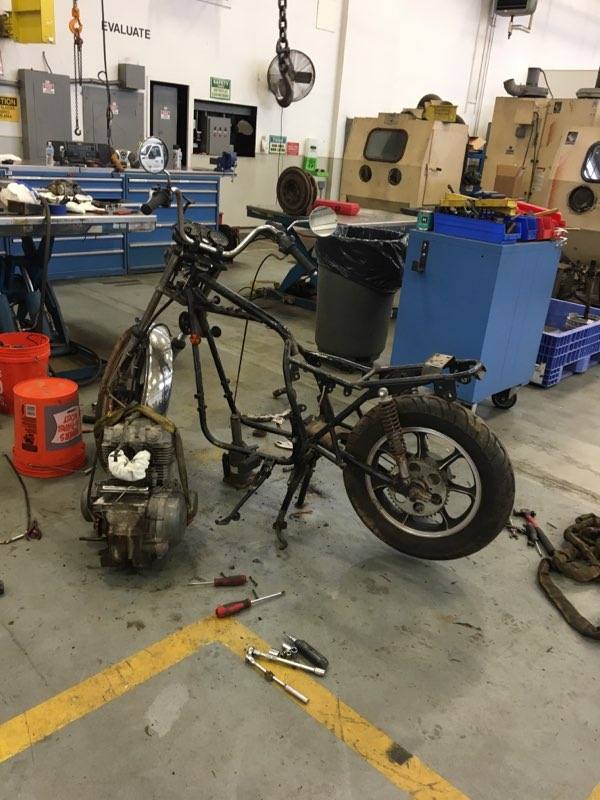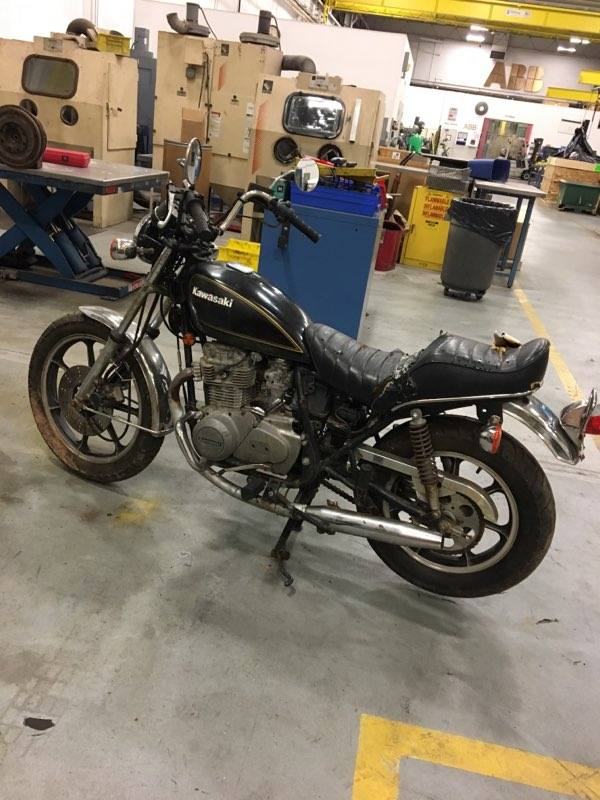 Started a little rigid 400 project. Started with a $150 79 KZ400-H LTD frame that came with wheels, dry rotted tires, an engine that was missing a ton of stuff, carbs that were missing most everything, ignition and gas tank with no key, and a basket of usless parts. Stopped by my local bike shop and low and behold, they had an 81 440 LTD complete and running with brand new rubber for a parts bike. So let the fun begin! Any helpful input would be appreciated. So far I stripped the 440 bare, threw the new wheels and tires on the 400 and modified the handlebars a bit. Much more to come!