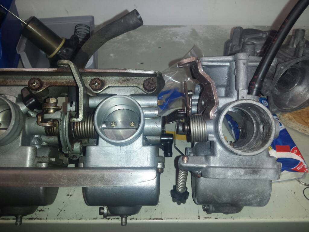 Unfortunately, I destroyed a throttle valve shaft of when I was trying to get the thing going. Lesson money for the impatience : 100 € for another carburettor ( Nr.4 ).