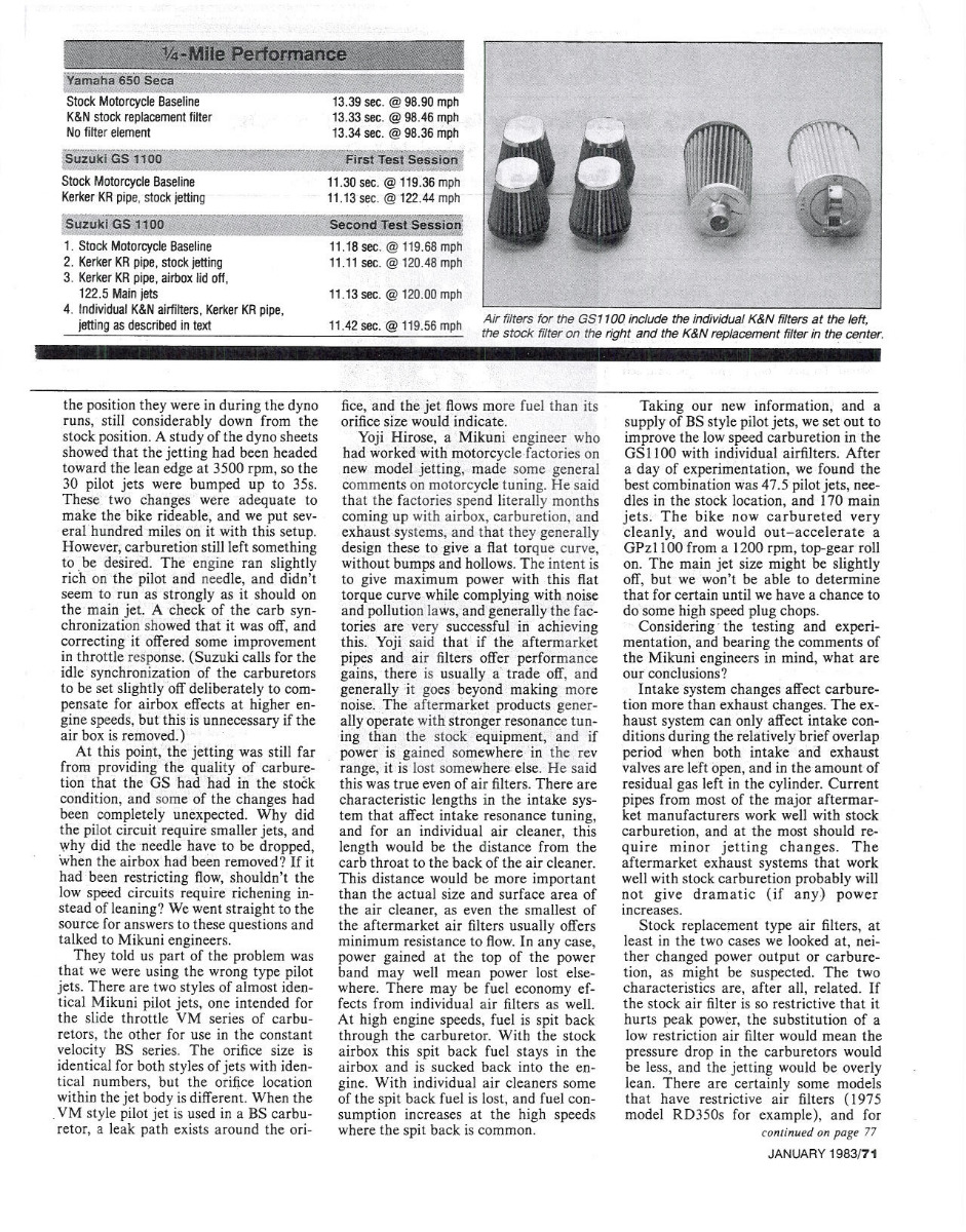 You probably already know this, but with the individual pod filters the carburetors may need re-jetting. Someone else can probably give you a good starting point. maybe #105 main jets & #17.5 pilots, but I haven't tried to remember exactly what others have used. doh.