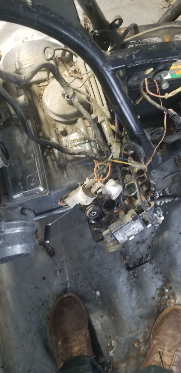 Couldnt get the ignition working, and I really wanted to roll the motor over and get some ignition out of it before stripping it to clean up, so after some hacking and slashing, it starts. Not fully running, but it burns fuel.