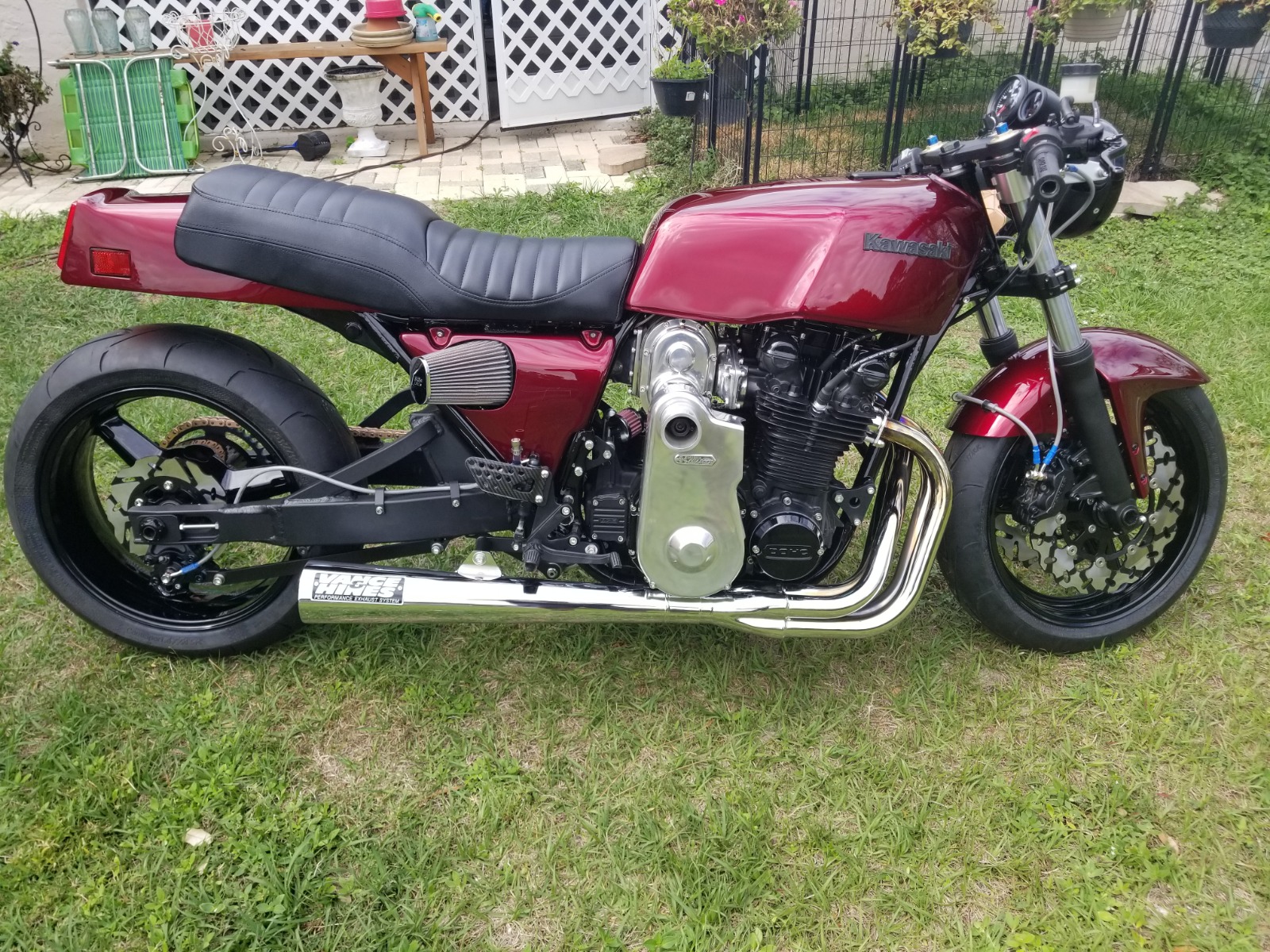 This is actually a bolt on kit made just for the KZ900/1000 back in the early 80's, from what I'm told. Hard to find info on it. Originally, the carb sat straight under the seat, but I added a 45 degree angle to the intake to get the filter out the side. Just to give a little more of a look to it