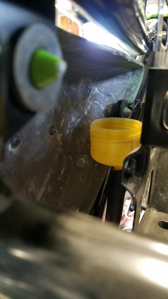 The ZX-6 master uses a different diameter reservoir line than the aftermarket unit I had on there. So I end up needing to use the reservoir that came on the ZX-6. Started test fitting it and found the adapter bracket I made wasn't needed any longer. This reservoir, like the m/c, came with half of it painted black with spray paint, along with it's black cap. After cleaning it, it is quite yellow and discolored. But it looks better than it did.
