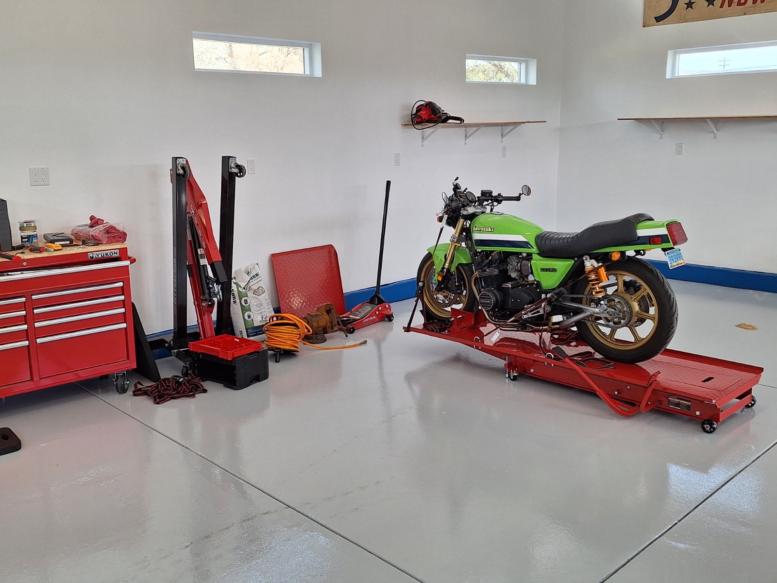 So today I found the local Harbor freight was having a Inside Track Club member sale, one day only, for 20% off of any one item. Just what I was waiting for! I have a new motorcycle lift ready to put in Shop 2.0 when the final inspection happens next week. The Green Monster blew a right crank seal during break in. so now I have the last piece of equipment I need to remove the motor and split the cases. I saved $110 waiting for the right sale.