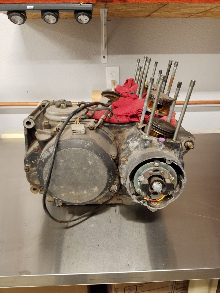 The stock displacement was 738 cc, the 67 mm bore bumps it up to 761.5 cc. With the compression increase it should be fun to ride!