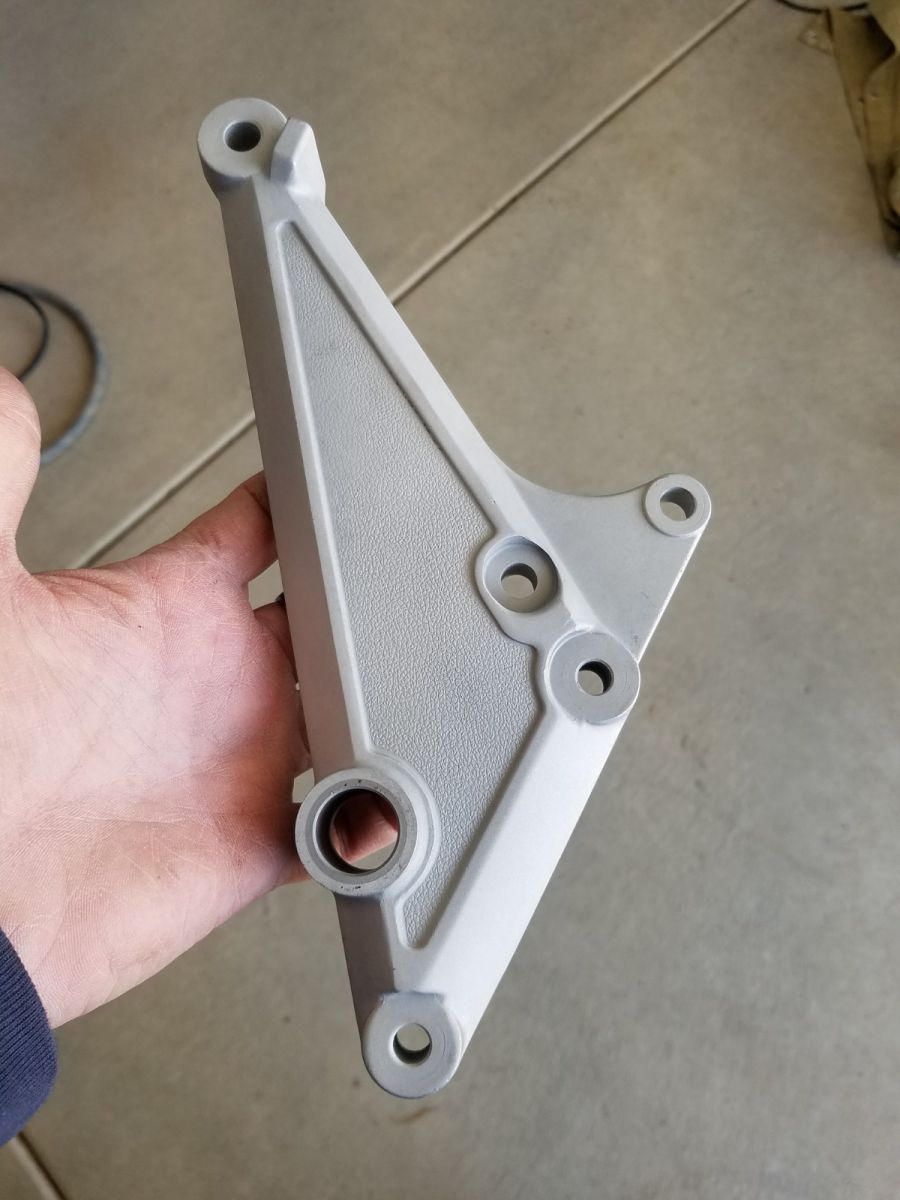 After multiple attempts to paint the rear footpeg brackets two tone (like stock), I threw in the towel and blacked them out. Single color is so much easier.