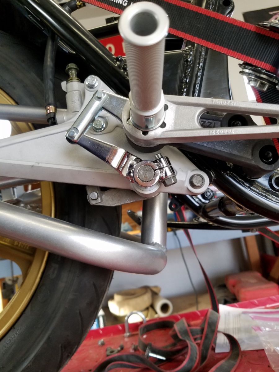 16 Feb 2020 10:31Skidmark wrote: If I can find a stock right rear footpeg bracket that does not have the brake shaft frozen, I think I can get the ZX-06 master bolted up to it. This would allow the brake linkage that came with the rearsets to work. I have found several on Ebay, but none with a working brake shaft. While trying to get my brake shaft unstuck, I broke the mounting bracket. A good, working replacement would solve my issues.