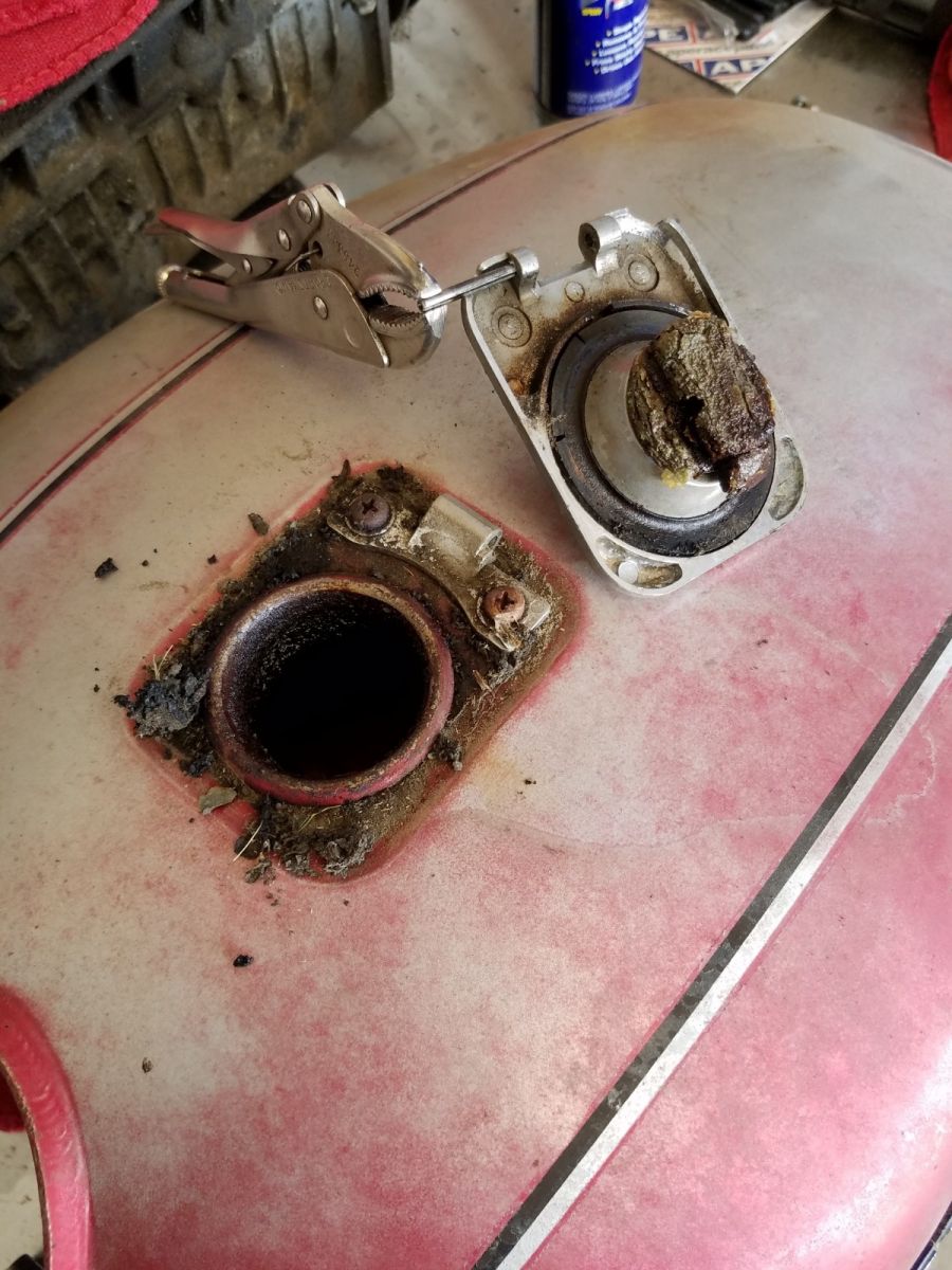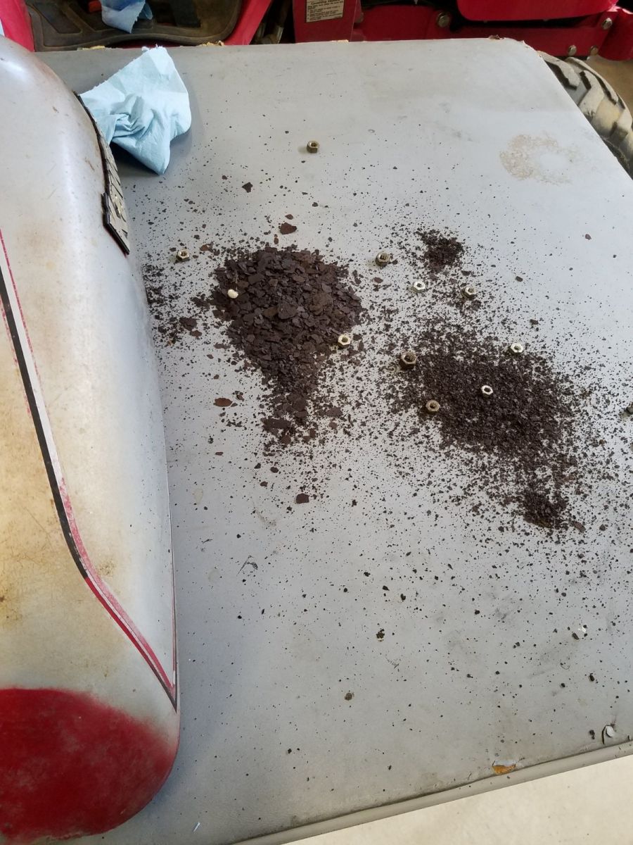 After draining the 28 yo gasoline and letting the tank dry inside, I threw in a handfull of nuts and got to shaking. Wow. I didn't expect this much to come out...