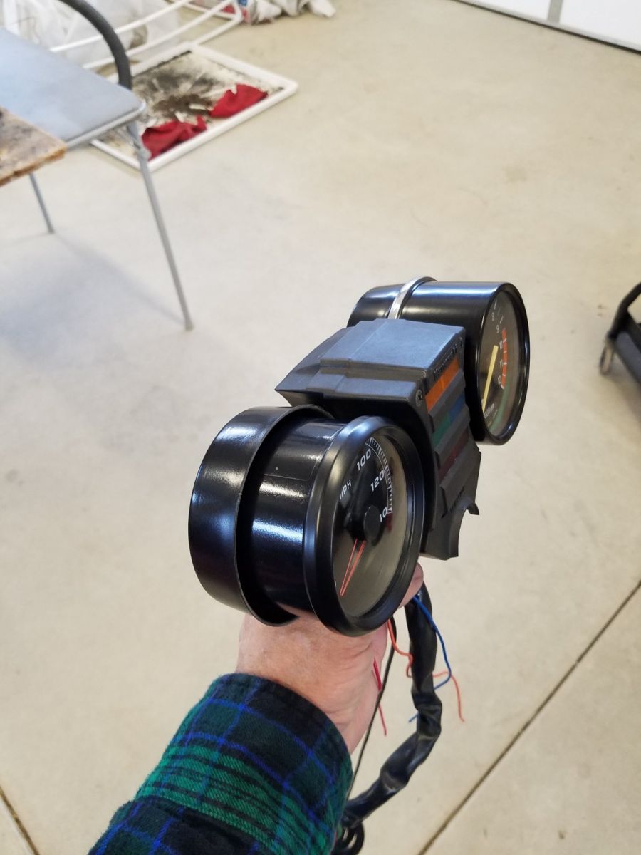 Looks good from the front. It almost looks like you could just cut the front off the stock housing and the new speedo's bezel would just sit flush on it. Then you could tack the old crimp ring on and turn the frypan into more of a pot