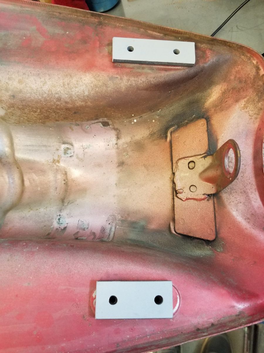 Getting the tank prepared for another round of chemicals to get rid of the rust. I made some block off plates from some 1/4" x 1" flat bar I had in the shop.