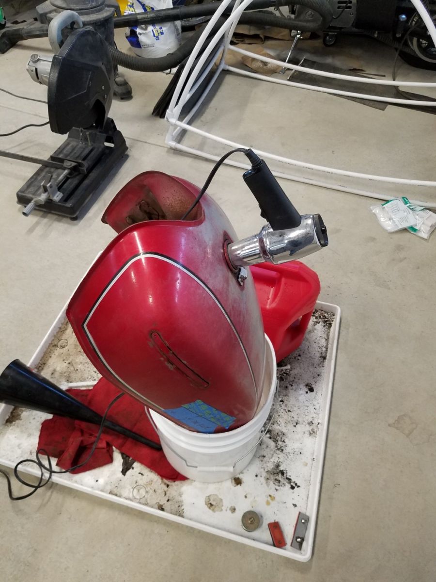 Using a heat gun to dry the tank. I will see how it looks inside in the morning. The cleaner had the same color and smell as the inside of the float bowls. So I guess it did what it was supposed to do. Hopefully no more evidence of old fuel gunk.
