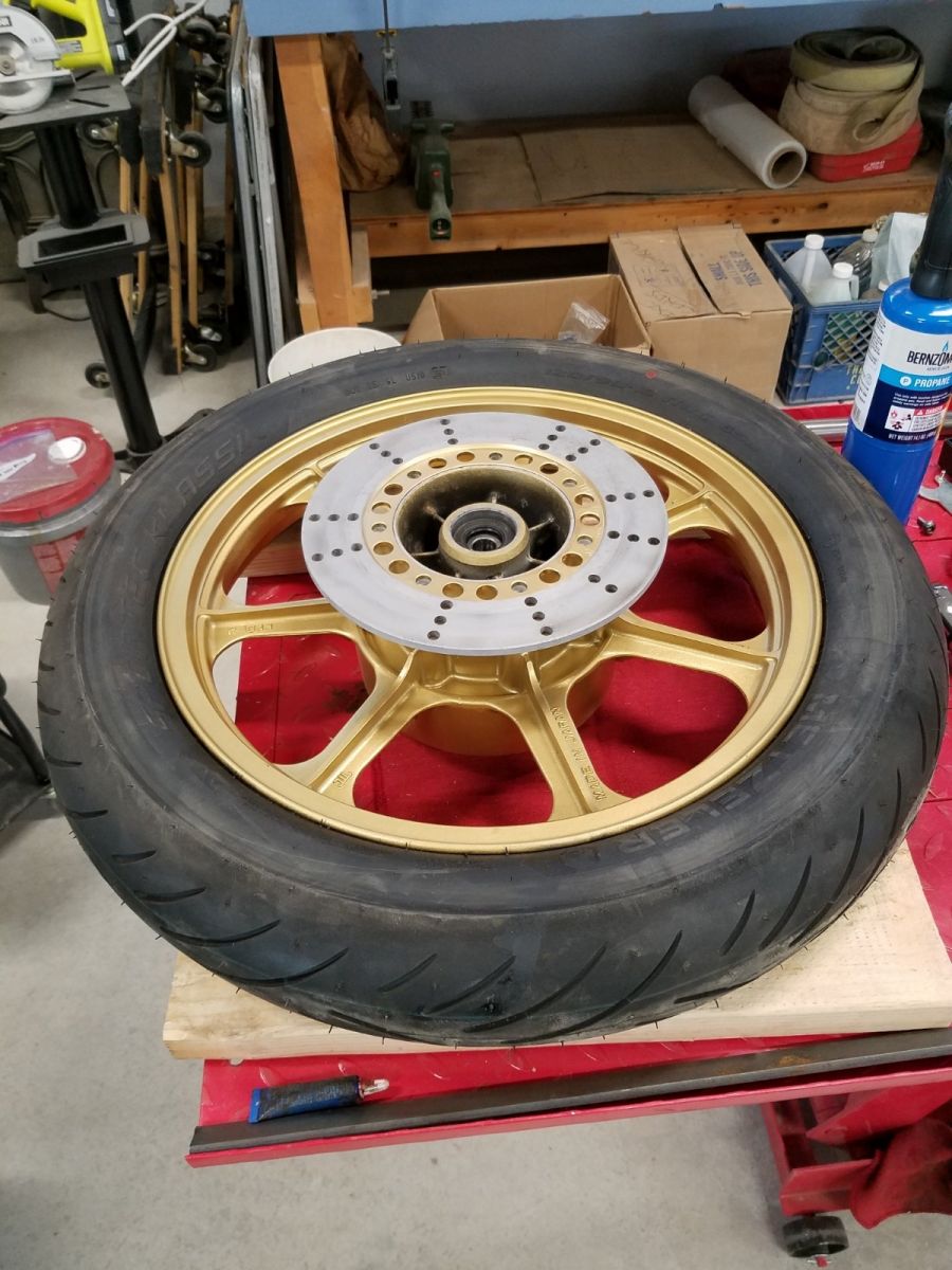 As my rear brake disc bolts soak to get the rust off, I painted the center of the disk. The stripped bolts will get the heads painted black.