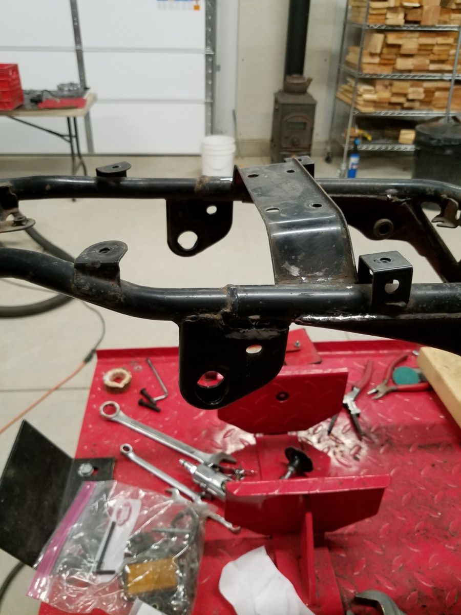 I spent a couple hours today just cleaning up the frame with an air grinder. What Kawasaki left on and around their production welds was pretty disappointing to me. But if I am going to powder coat it, may as well fix all the ugly stuff.