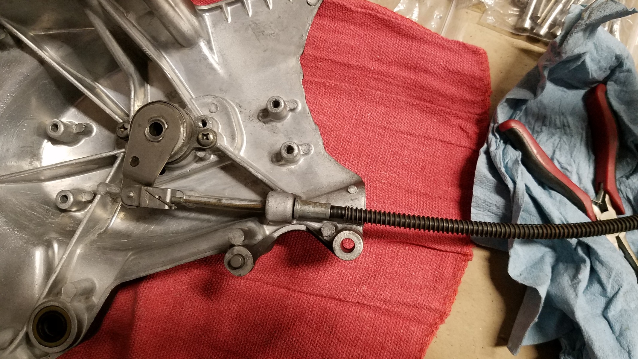 I finished adjusting the length of my shifter linkage this morning. The original shifter will get cut down and refinished when the side cover assembly is completed and bolted down.