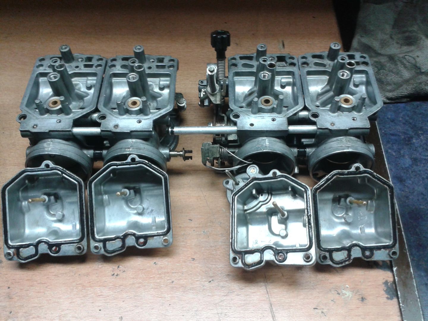 How is the condition of the inlet fuel tee? The plastic inlet part likes to crack. Also, be careful of the pilot jet plugs. They are plastic with a tiny O-ring. Don't soak those either. I've posted all the various O-ring sizes here before in older threads so you can supplement those carb kits. Lastly, be sure to remove the bleed pipes and pilot screws since the orifice through those is tiny. You gotta hold them up to a light to be sure they are open.