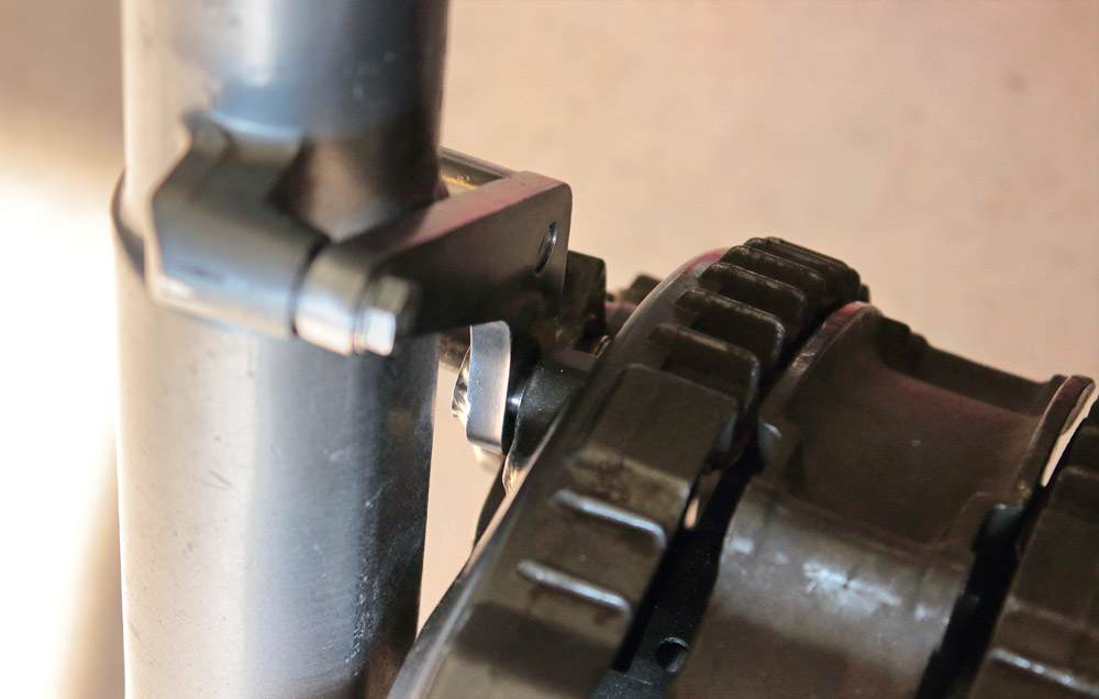 But simultaneously one may ask a question: is it safe to use sprocket instead of wheel? Answer is YES, and main proof is in earliest OEM Kawasaki KZ650 manual which is dated by 1976, while motorcycle sales started in 1977. That means that manual was illustrated with photos of pre-serial motorcycles.