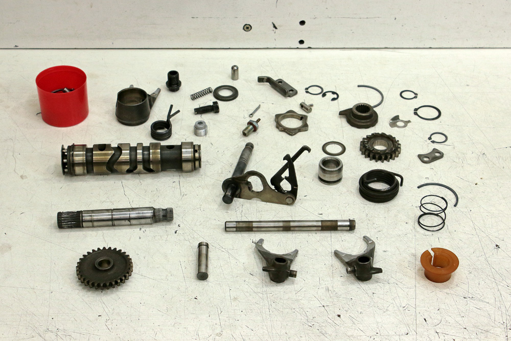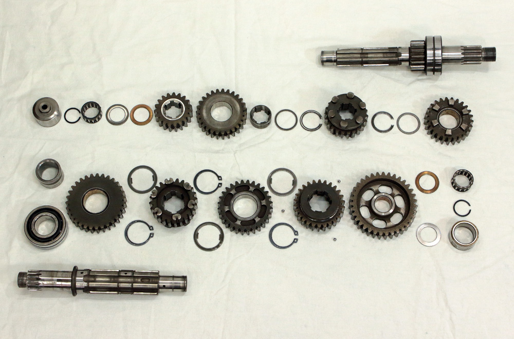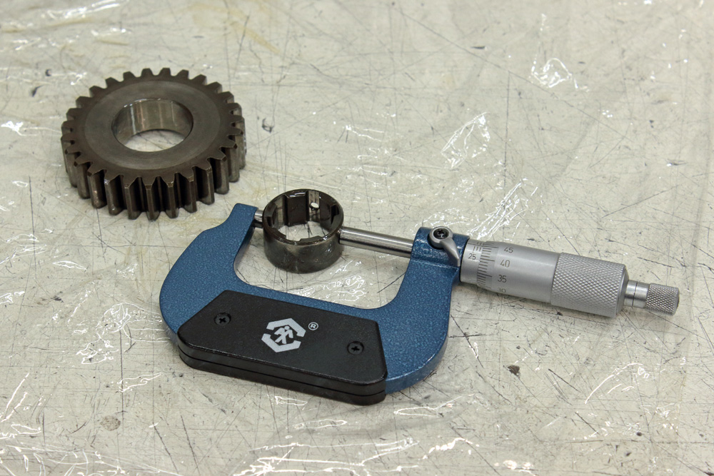 I did all measurements according to the book and in result I got confirmation that most of parts were not only in specs but in those range that book calls “standard” which means dimensions of new part. The only “out of spec” thing was copper bushing of first gear on output shaft. It’s curios, even taking into account that it’s the largest gear on the shaft of smallest diameter as it means intensive use of first gear. I could only assume that previous owner of engine was learning how to ride bike. However, looks like he didn’t own the bike for a long enough as most of engine parts look like new. And sure, I found and ordered new first gear to get perfect gearbox for my project.