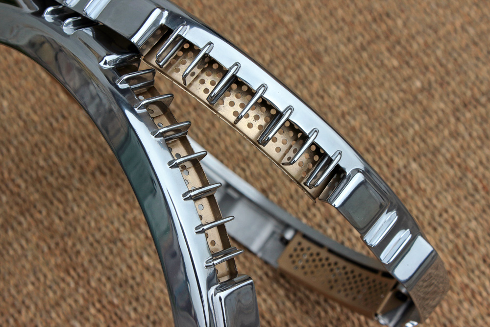 There are four grids for every brake disc patterned with round holes. They are made of steel and initially were painted in black. Sure, no painting lasts in such places unharmed for more than thirty years, thus grids needed refreshing. So to paint grids anew? Nah, it’s too trivial and we all know that devil is in details.