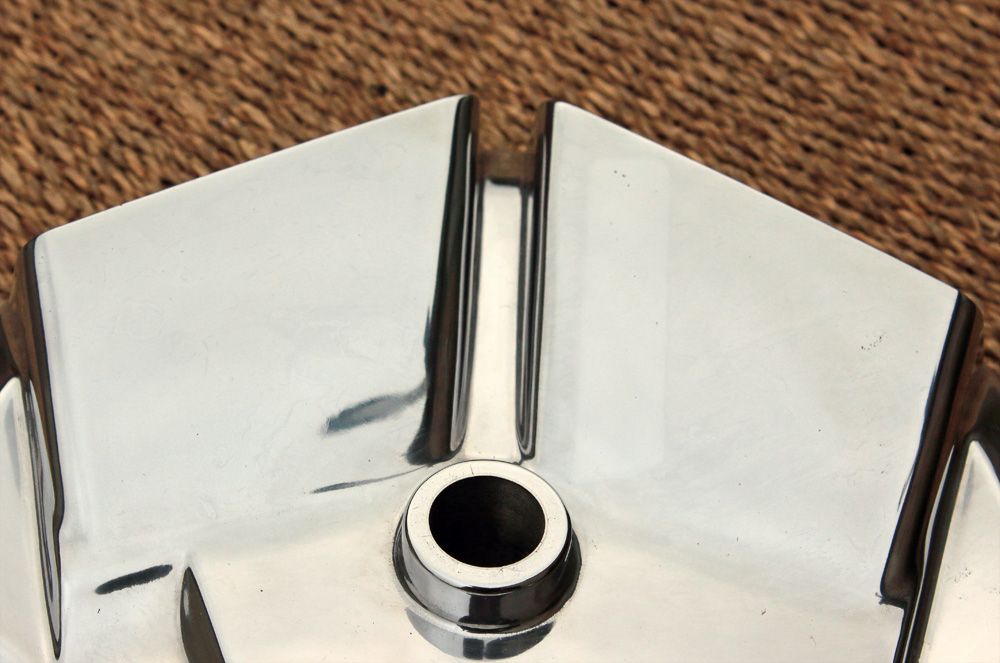 All these aluminium parts were designed to be lightweight, so they are quite thin, thus I didn’t dare to grind a lot of aluminium off them and in result surface is not flawless. Another funny thing : after polishing it is became apparent that, alloy they cast of was not quite homogeneous. After being polished to mirror it looks like some kind of Damascus steel pattern.