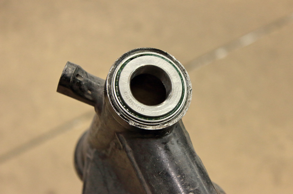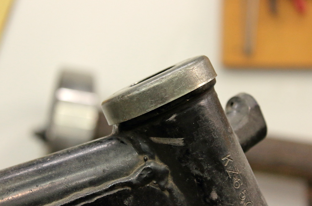 For this purpose I picked steering head cup from Yamaha XJ550 which perfectly fit Kawasaki KZ650 steering head. It sits there like it was made for it:
