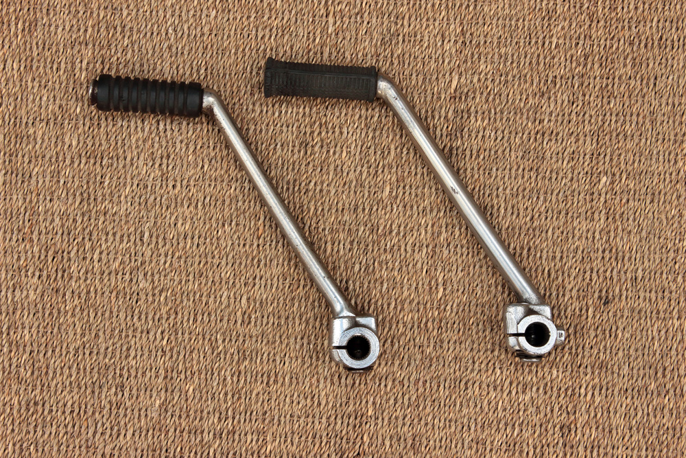I’ve met opinion that older and newer kick pedals are of different configurations due to different mount of rider footpegs. However it’s not so. It so happened that I have both KZ650 kick pedals in my possession. Newer type came with KZ engine and older type I found to be installed on GS750 engine that in its turn was installed in KZ650 frame…