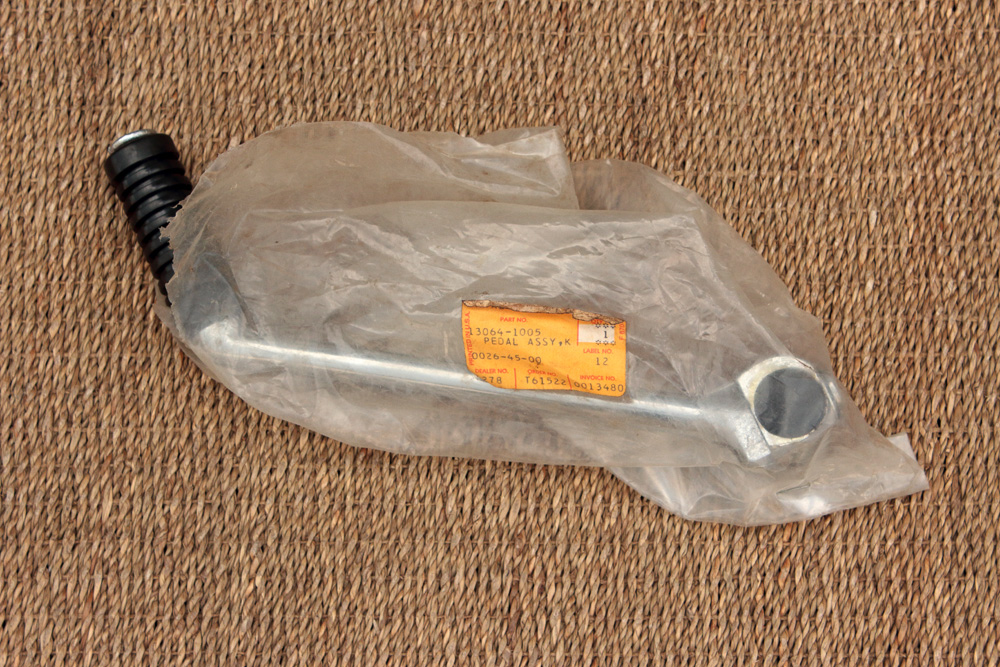 Sure, there is nothing impossible: I could dismantle them, remove chrome, polish them and then order them to be chromed again, but it might be as expensive as buy a new pedal. So what I did instead, I searched for new OEM part and found it on USA ebay. Funny thing, but it turned out that I already bought part form seller who was selling kick and that was exhaust mufflers for KZ project. Proper storage means a lot for parts manufactured 40 years ago (last model year of KZ650 with kickstarter is 1980). This pedal turned out to be exactly as advertised: brand new and without traces of rust. I like how it looks and I like sound of its “click” when it being fold or unfold.