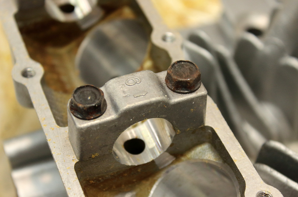 Removing of camshaft caps gave me headache. Not only bolt cups were rusty, rust was on bolt bodies and dowel pins as well: