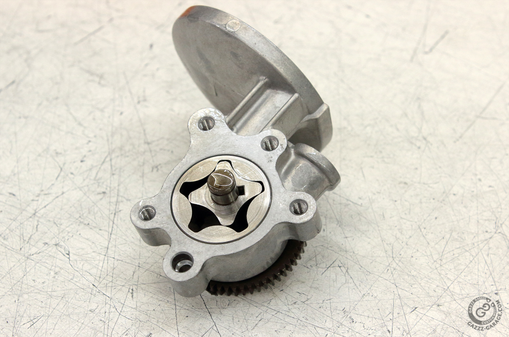 Then I installed a pump shaft with gear and pins.