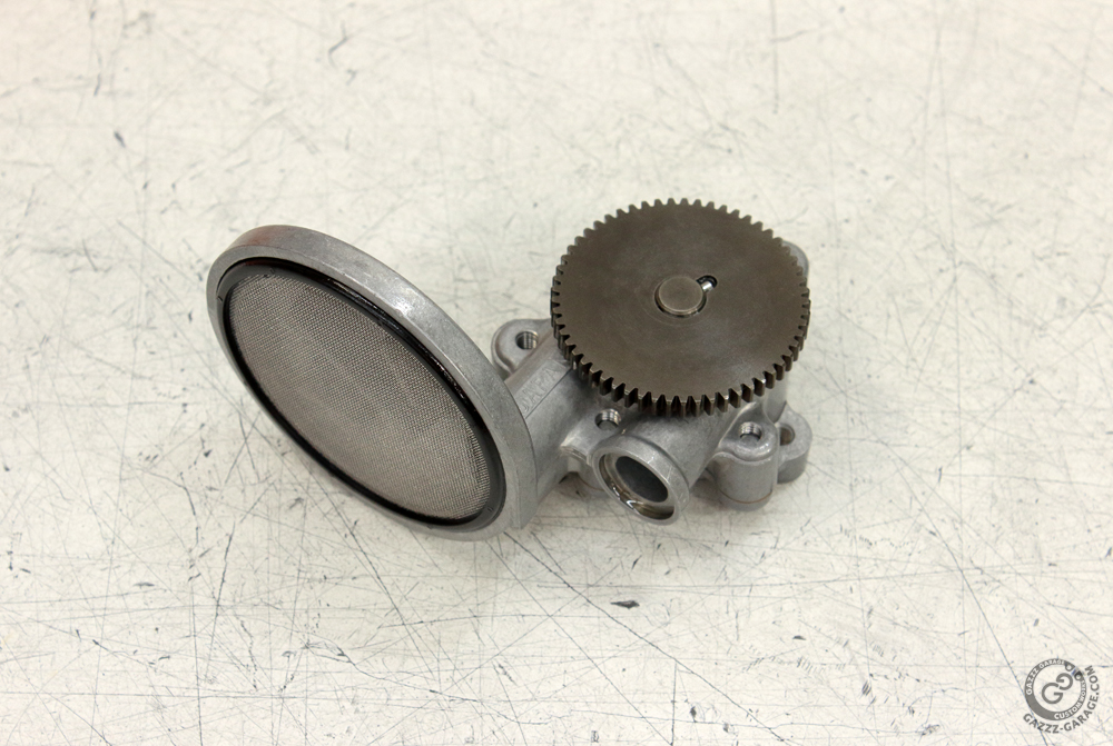 The Kawasaki KZ650 oil pump turned out to be in perfect condition, but it needed some cleaning. To clean the oil pump properly I completely dismantled it, down to removing the strainer.