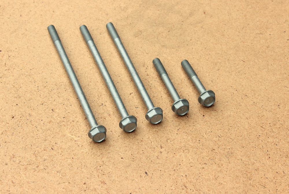I returned bolts with defects of coating to the subcontractor and they redo the work. But at this stage I already had my mind full of doubts if I should use these bolts to assemble the engine. It’s easier to replace bolts that fix side covers or other parts of smaller significance. However it’s different for bolts that hold halves of crankcase together: especially for those that are in the crankshaft area and are to be tightened in specific sequence. So I ended up ordering a new OEM set of bolts. Since my goal is not restoration, I didn’t stick to bolts of early design. Instead I ordered a set of bolts from Kawasaki ZR7 which are interchangeable with KZ650 bolts. Here is complete set of them:
