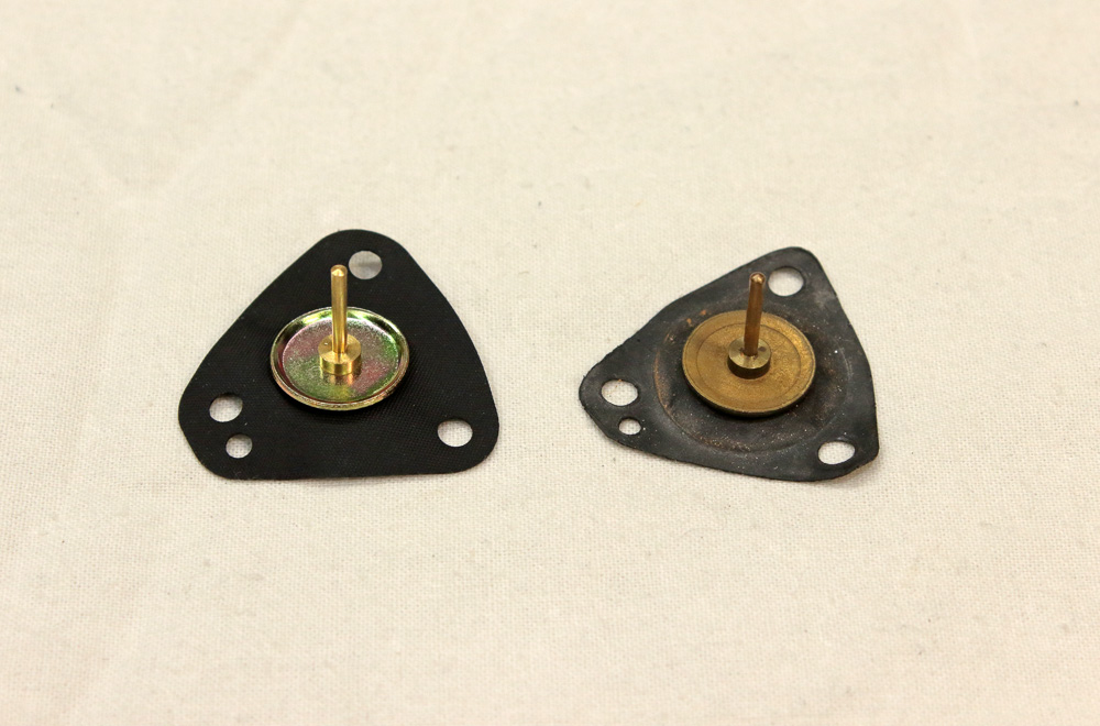 Here is K&L valve diaphragm in comparing to OEM. That needle you may see on one side of diaphragm presses the valve in float bowl and opens it.