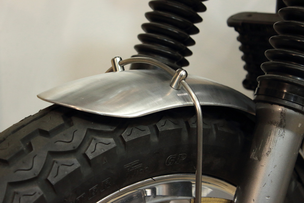 Work took a lot of man-hours as it had to be done very accurately. When the finish of grinding and sandpapering became quite visible, mudguard mount already began to look really nice. I smoothed perfectly welding seams on outer sides of mounting plates, however I wasn’t so picky with inner sides: one have to know the edge between perfection and madness…