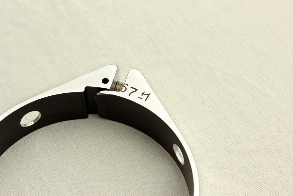 I also bought P2M aluminum clamps (anodized in black) to fix gaiters lower ends on outer fork tubes. I used clamps of this manufacturer before and found them to be very nicely made. The most suitable size among assortment of P2M clamps was 67 +/- 1mm which was approximately for 1mm larger than desirable, but I supposed this issue could be fixed.