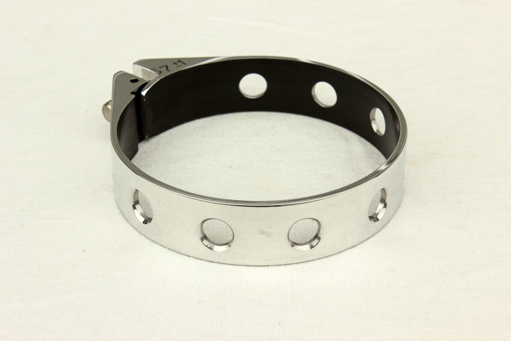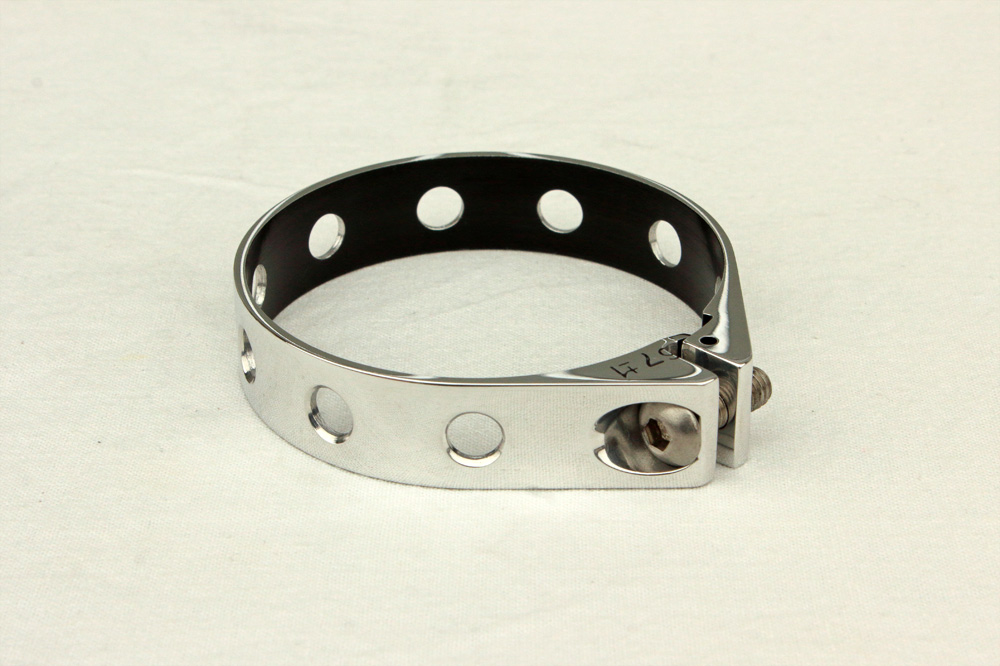 However, when I fit clamp to gaiter it was obvious for me that I need polished clamps to fit polished fork. Thus, I sandpapered anodized layer from clamps (inner side I left untouched) and by the way I grinded both ends of clamps so they will fix gaiters on fork outer tubes tight. The idea to drill holes in clamps was so obvious and solid that one could bruise a toe by tripping over it. The only question was: how many of holes and of what diameter? After simple measuring and calculations I decided that nine 7mm holes would do. Sure, I didn’t forget to countersunk holes’ outer edges.